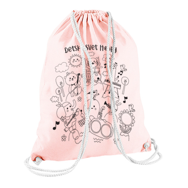 Vrecúško s potlačou "Detský svet hudby" vhodné pre malých aj veľkých v štyroch krásnych farbách.