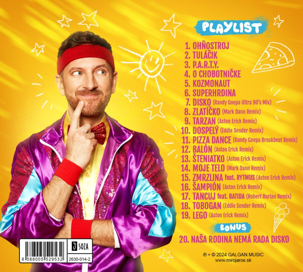 Po veľkom úspechu albumu Disko, prichádza Miro Jaroš s jeho pokračovateľom - albumom "Ešte viacej disko" Na albume nájdete nové pesničky, aj remixy najväčších Mirových hitov. Chytľavé melódie vás roztancujú a naučia, že všetci sme výnimoční, aj že každý môže byť Superhrdinom. Prekvapením je bonusová pesnička "Naša rodina nemá rada disko" ktorá je recesiou na pesničku Disko. Album je určený pre celé rodiny.