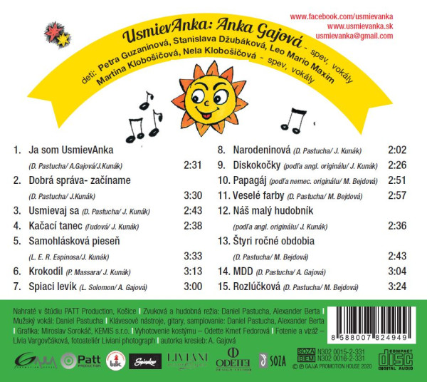 Najkrajšie UsmievAnkine pesničky predstavujú výber tých najznámejších piesní v podaní rozprávkovej mamky - UsmievAnky, usmievavé pesničky o všetkom, čo deti najviac zaujíma - o zvieratkách, samohláskach, ale aj pesničky k sviatku MDD či rozlúčke so škôlkou. Tieto pesničky vychádzajú na 2CD, kde jedno CD je pesničkové s 15 piesňami a jedno karaoke CD - spolu s maľovankou, kde sú všetky texty a obrázky.